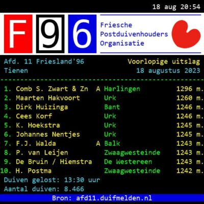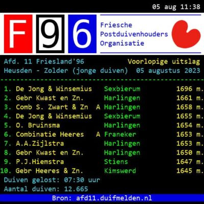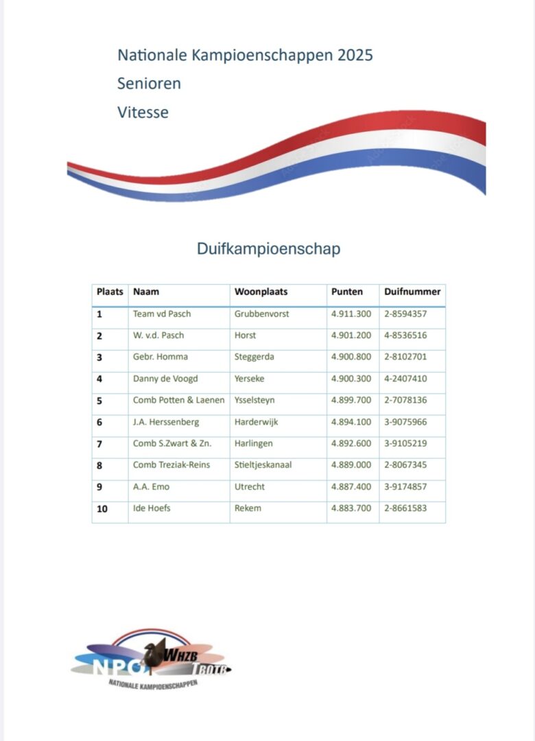 7th National Ace Speed NPO WHZB/TBOTB 2025 (1st Provincial Ace Speed NPO Dpt 11. Friesland) -> “HANNAH” Comb. S. Zwart & Zn
