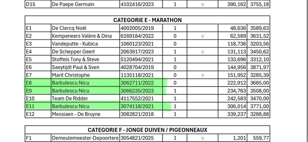One of the big Marathon Champions in Belgium – thanks to his Noel Peiren pigeons !! Nicu has 3 pigeons in the National top 12 Olympic Marathon rankings KBDB 2025 !!