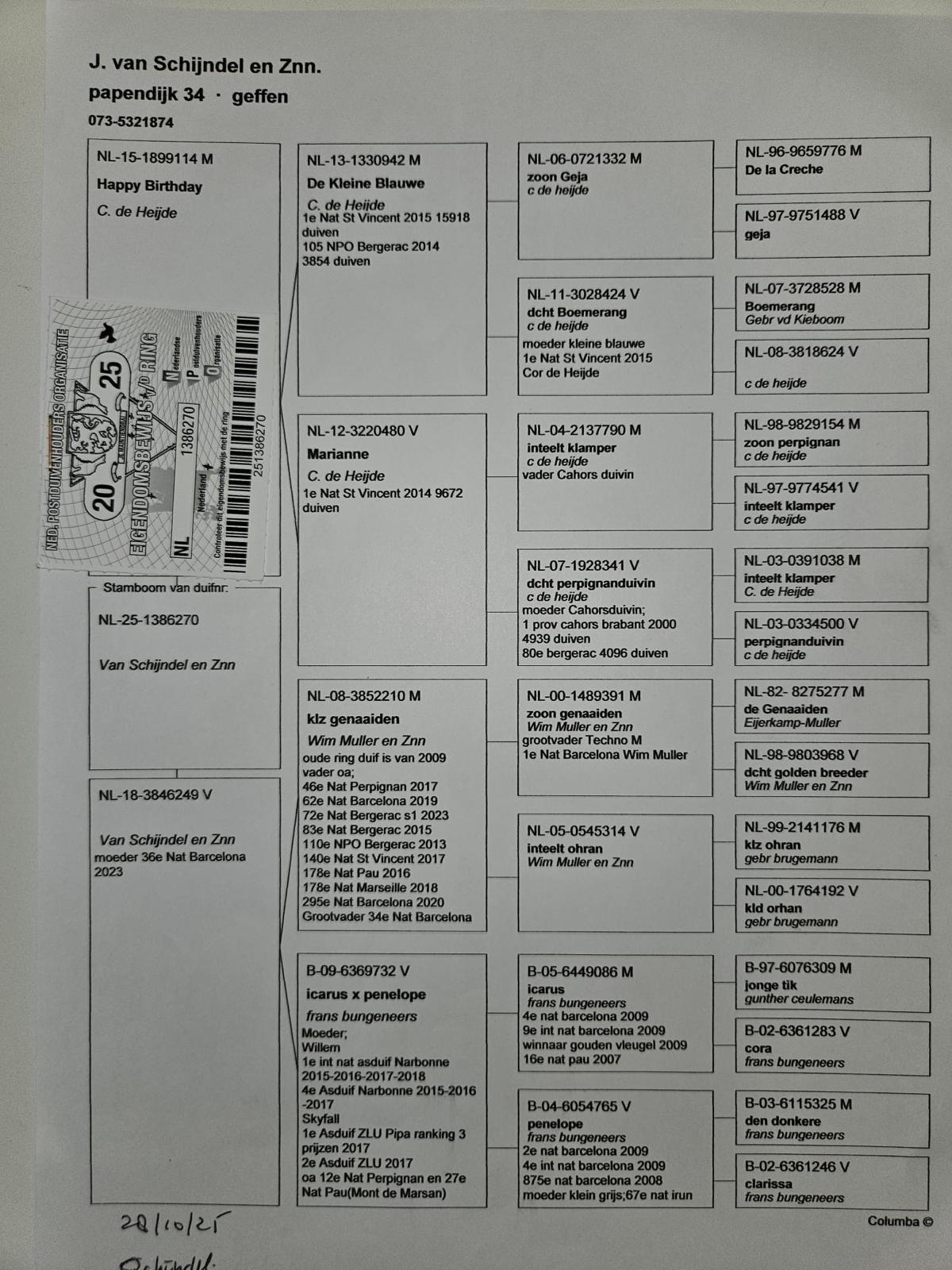 Comb. Jo van Schijndel en zonen schenken een supertje (zie stamkaart). Wat hebben zij al niet gewonnen ??? Een van de superhokken in Nederland op de Marathon met heel recent nog de 1e Nationaal St Vincent 2024 !!