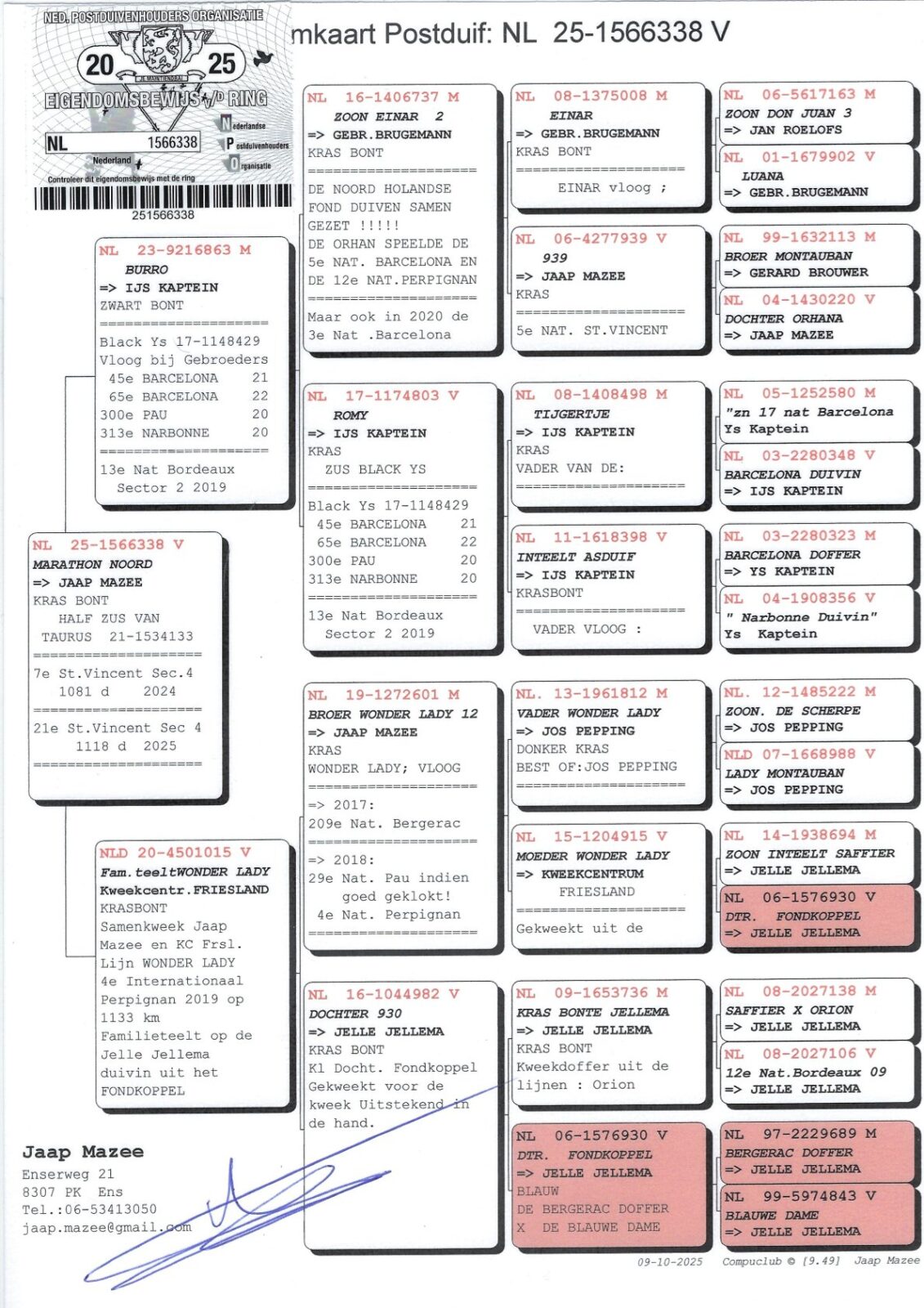 Jaap is altijd op zoek naar goede duiven en daar plukt hij regelmatig de vruchten van. Koop de bon en ga op bezoek!