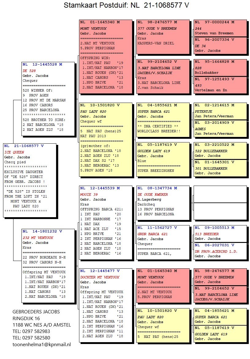 SUPER BARCA 621 is a direct son to the famous breedingpair BETUWEKOPPEL. Offspring of the BETUWEKOPPEL win: 1, 1, 1, 1, 1, 2, 2, 2, 2, 2, 3, 3, 3, 3, 4, 4, 4, 4, 5, 5, 5 Marathon NATIONAL!!