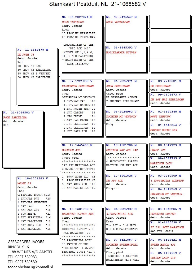 RODE BARCELONA – all the toplines in this pigeon: MONT VENTOUX, SUPER BARCA 621, NATIONAL ACE 742, DE PERPIGNAN, DE BARCELONA, 3.PROVINCIAL ACE, CHAMP 729 !