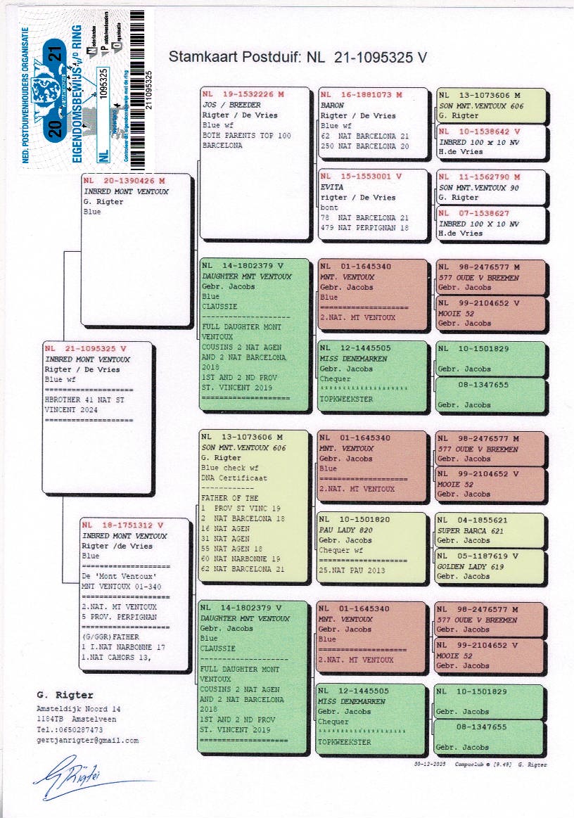 Greatgrandfather of the Best International Perpignan pigeon 2023-2024, winner of 10 International Perpignan ’23, 22 International Perpignan ’24 “LUNA”