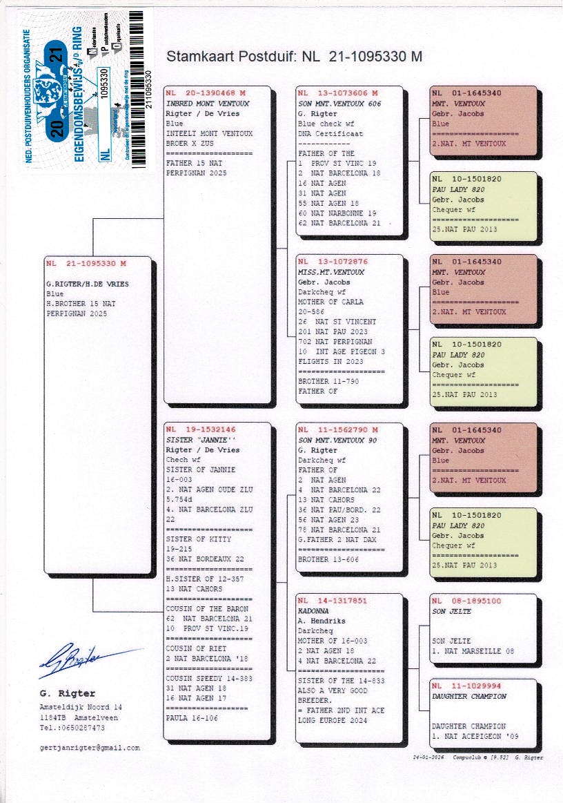 Greatgrandfather of the Best International Perpignan pigeon 2023-2024, winner of 10 International Perpignan ’23, 22 International Perpignan ’24 “LUNA”