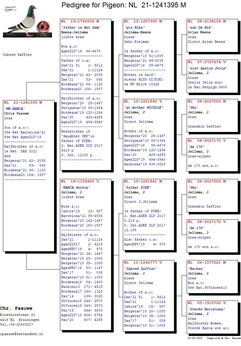 MR. BARCA – halfbrother of NICOLLE !- winner of the 1st National Dax 11.124 ’21 ! MR. BARCA is a son of the winner of 85 Nat Barcelona ’21 x the father of NICOLLE (1st Nat Dax ’21)