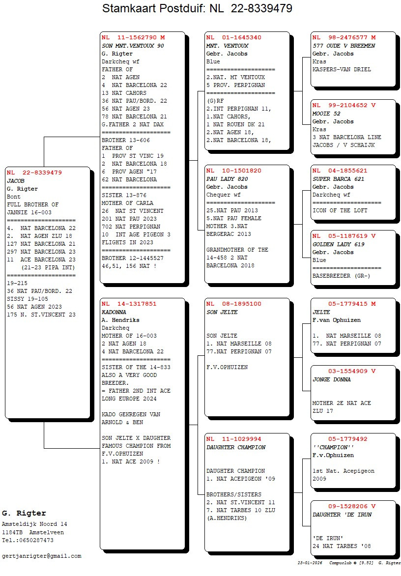 Offspring of the “MT VENTOUX” (Gebroeders Jacobs) are winners of a.o.: