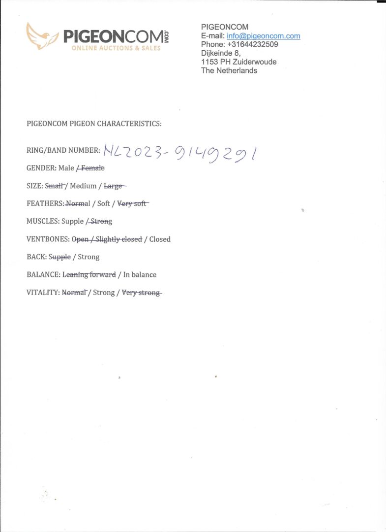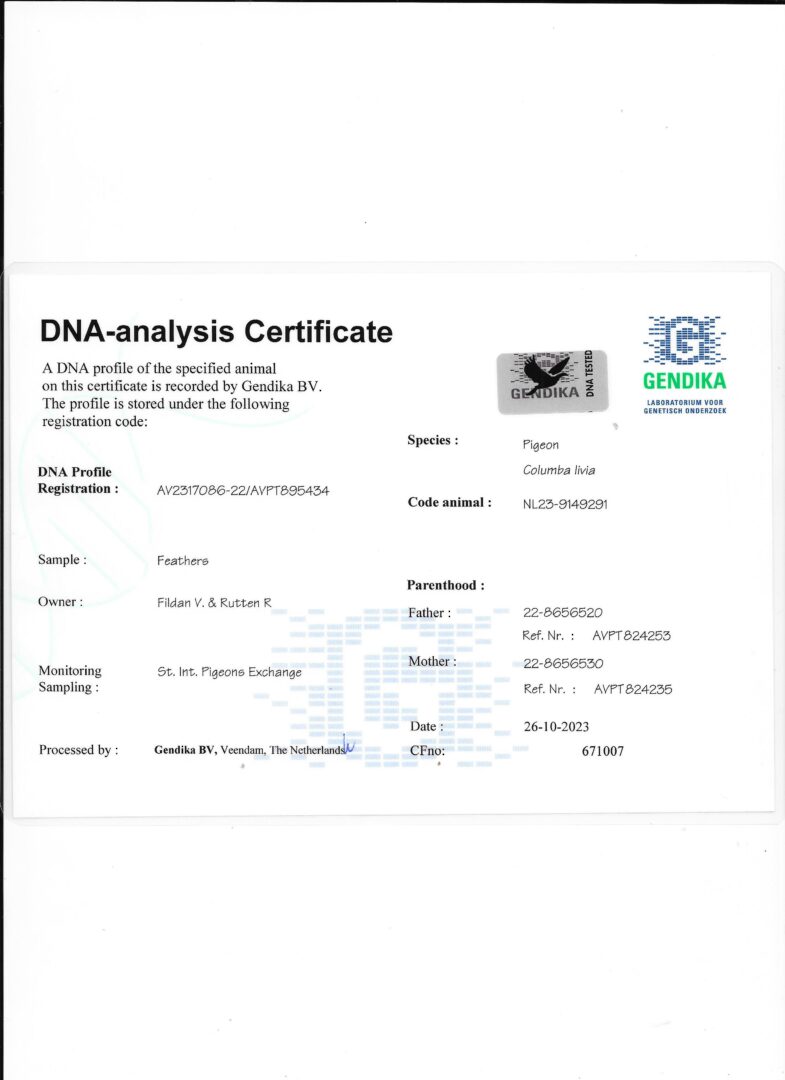 “FLOOR x SIEM” = super exclusive ! From son 1st National Ace Perpignan x 1st National Ace Barcelona paired to daughter 1st National Agen ZLU !! INCLUDING DNA CERTIFICATE !