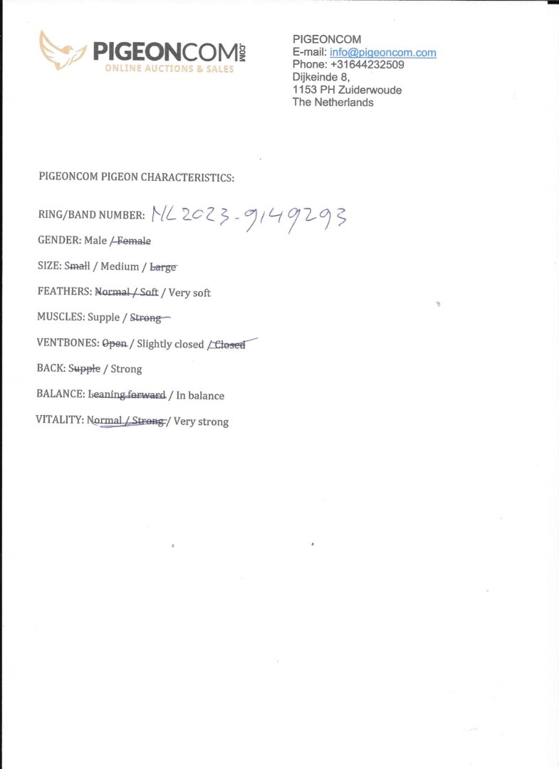 Father is a son to “FINN” 3 National St Vincent ZLU ’19 (9 International St Vincent) 960 km with 1007 mpm speed x “ELSKE” 16 National Barcelona ’19 (29 International Barcelona) 1089 km with 800 mpm speed ! “ELSKE” is a granddaughter to the famous “ZWARTE LOURDES” winner of the 1st National St Vincent ’06 and a granddaughter to “EVI” 1st National Ace Barcelona 2009-2013 !!
