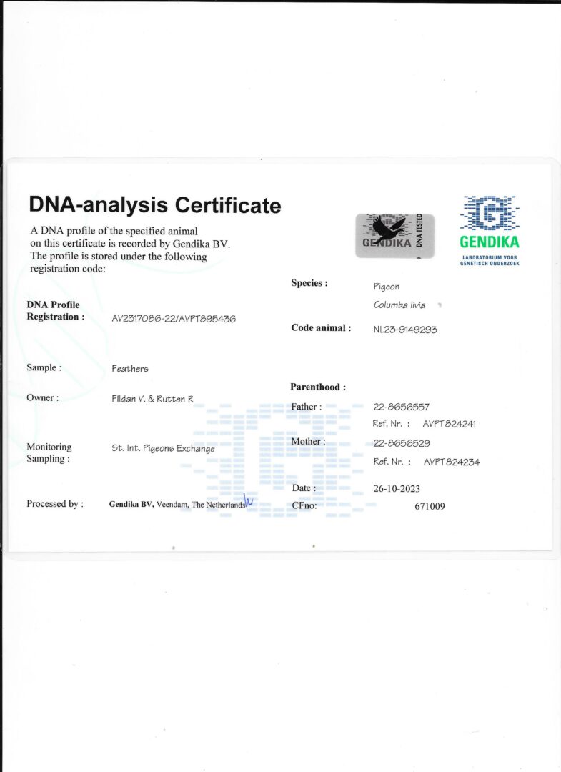 Mother is a daughter of “SIEM” 1st National Agen ZLU ’20 (9th International Agen 2020) x “FLEUR” 12 National Barcelona ’17 (25 International Barcelona ’17) & daughter “EVI” – 1st National Ace Barcelona 2009-2013 !!