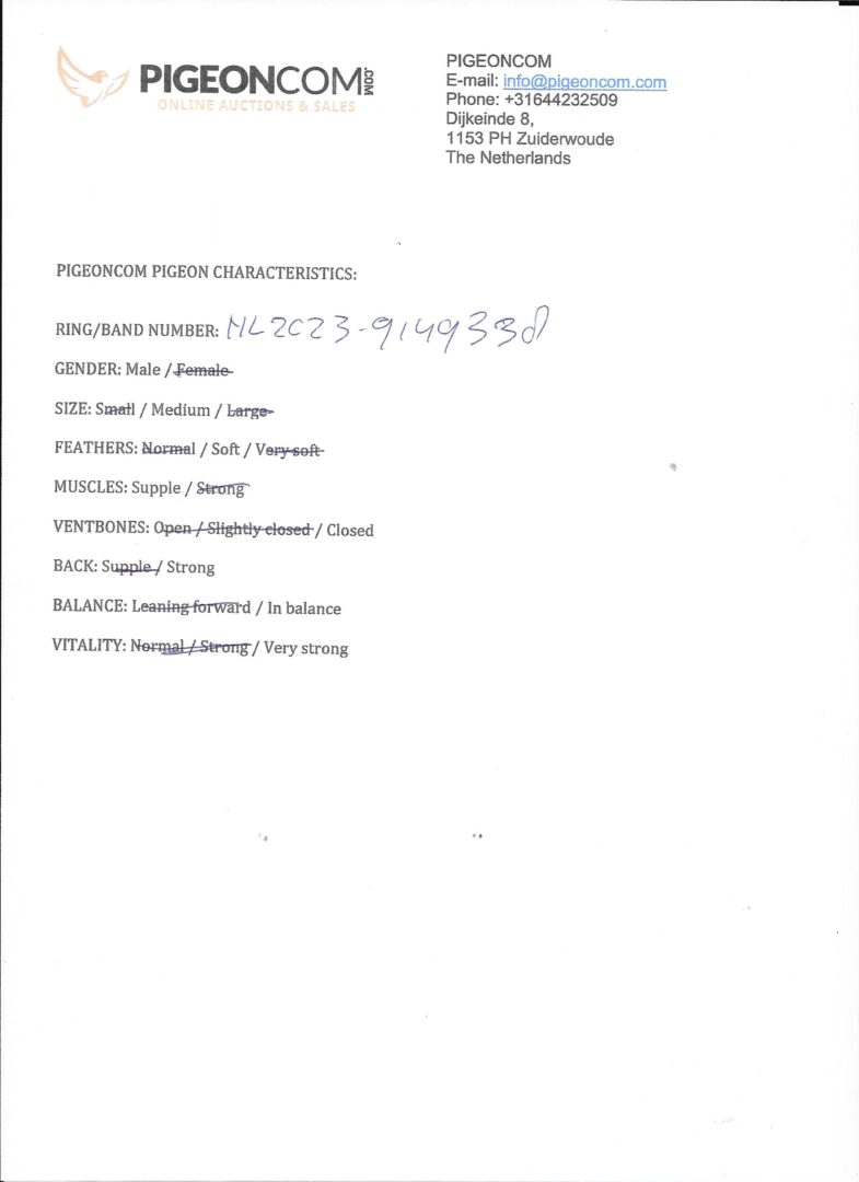 Father is a son to “FINN” 3 National St Vincent ZLU ’19 (9 International St Vincent) 960 km with 1007 mpm speed x “ELSKE” 16 National Barcelona ’19 (29 International Barcelona) 1089 km with 800 mpm speed ! “ELSKE” is a granddaughter to the famous “ZWARTE LOURDES” winner of the 1st National St Vincent ’06 !!