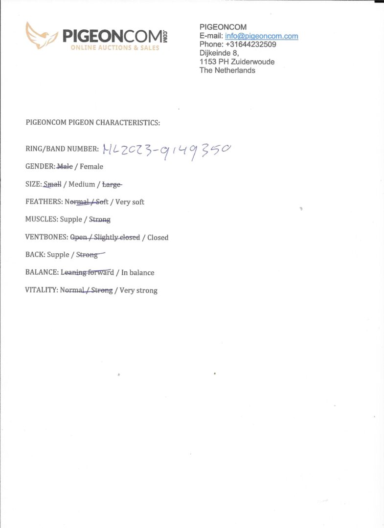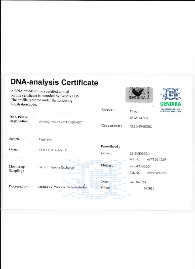 DOUBLE SIEM” = inbred to “SIEM” winner of the 1st National Agen ZLU 2020 (9th International Agen 2020) from son SIEM” x daughter “SIEM” !! “SIEM” is grandfather to 1st National Yearling Narbonne (12th Overall) & 2nd Best Marathon Yearling PiPa ranking ’23 !! INCLUDING DNA CERTIFICATE !