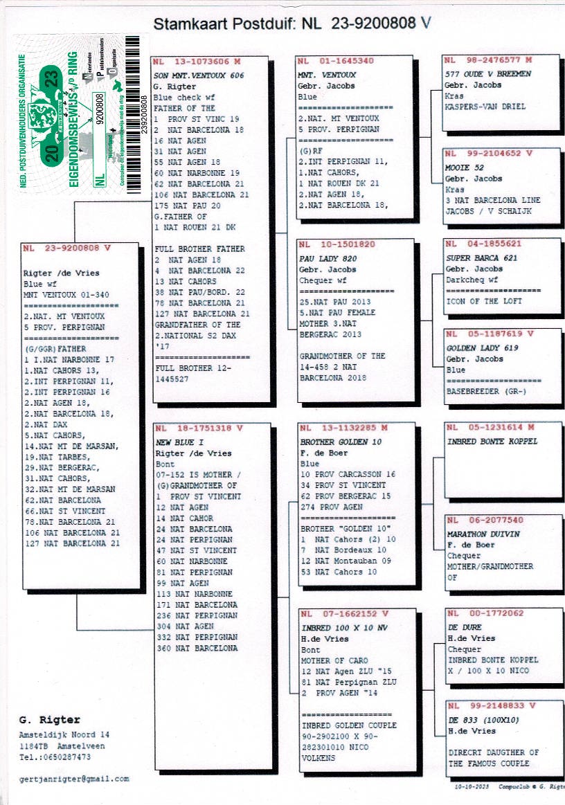 Greatgrandfather of the Best International Perpignan pigeon 2023-2024, winner of 10 International Perpignan ’23, 22 International Perpignan ’24 “LUNA”