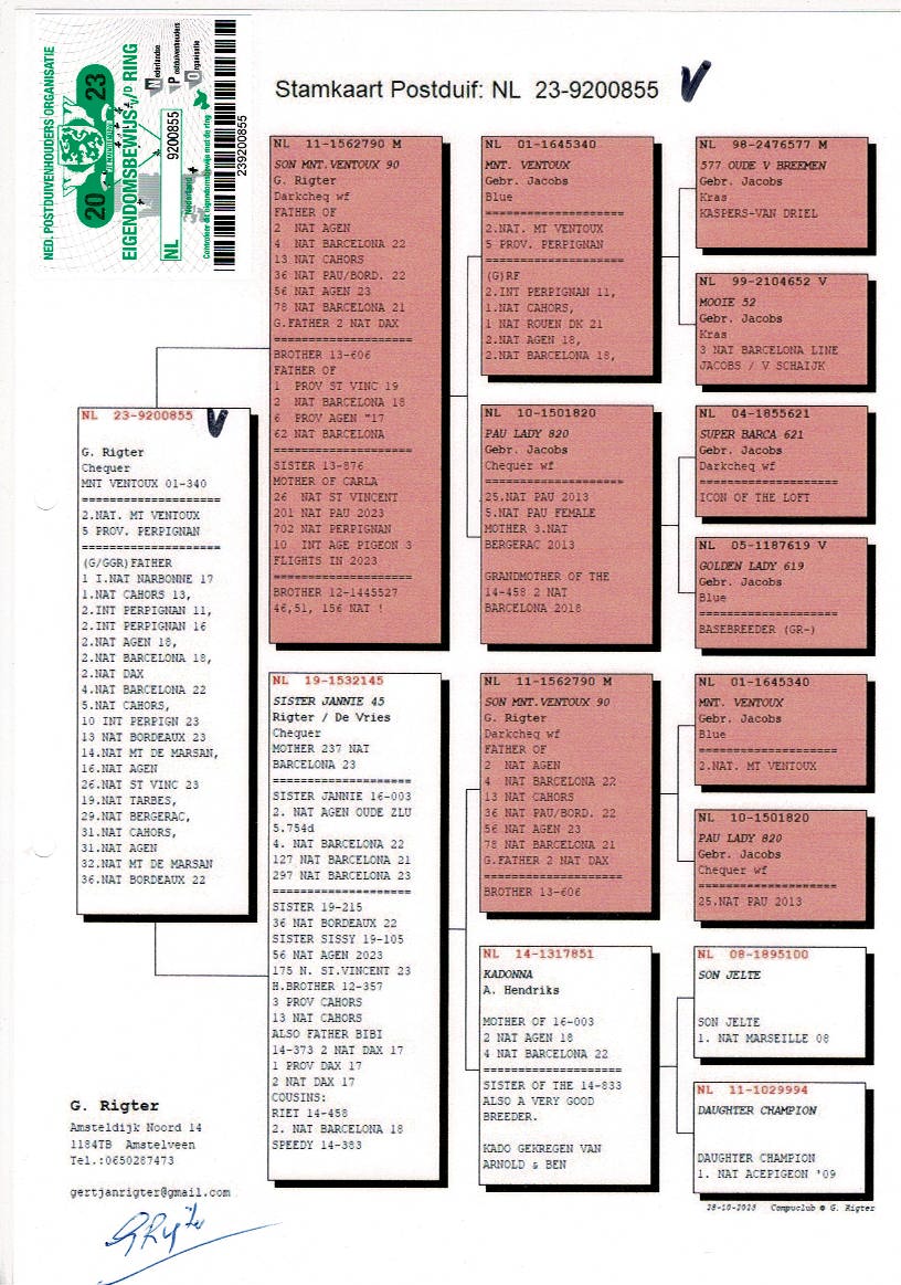Offspring of the “MT VENTOUX” (Gebroeders Jacobs) are winners of a.o.: