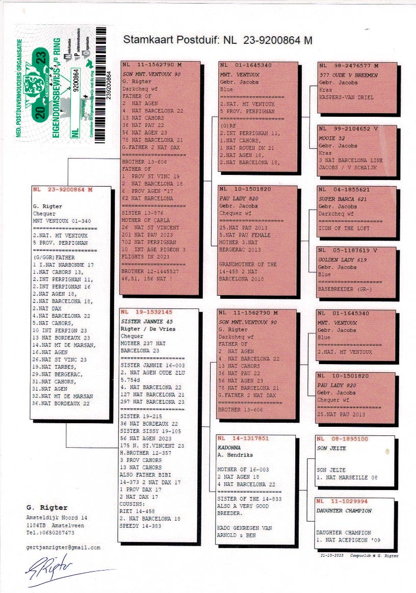 Offspring of the “MT VENTOUX” (Gebroeders Jacobs) are winners of a.o.: