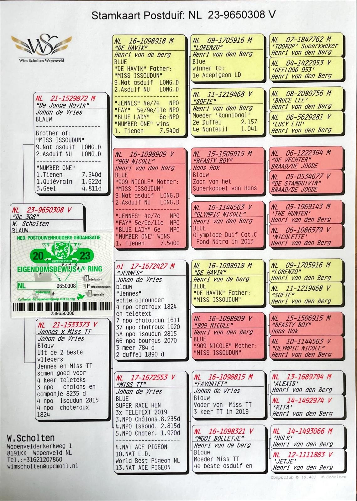 Mother = daughter of two of the best racers Johan de Vries “JENNES” x “MISS TT” 3x Teletext 2019, 3 NPO Chalons 8.235, 4 NPO Issoudun 2.815, 5 NPO Chateauroux 1.915
