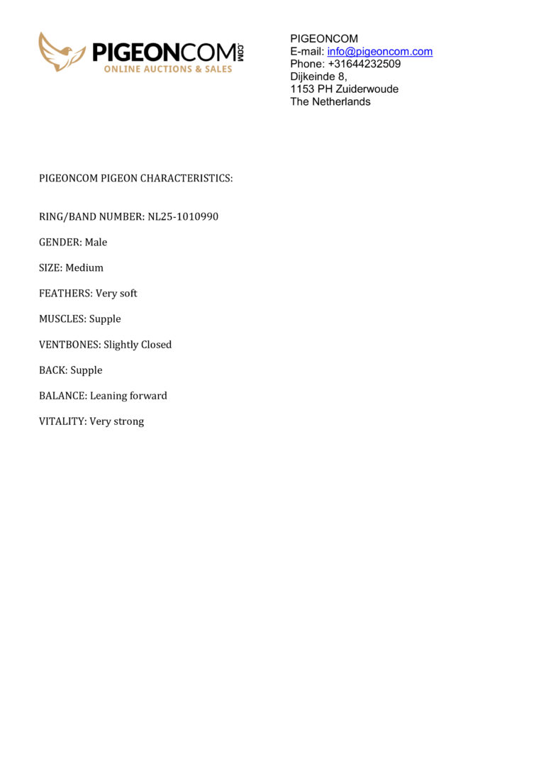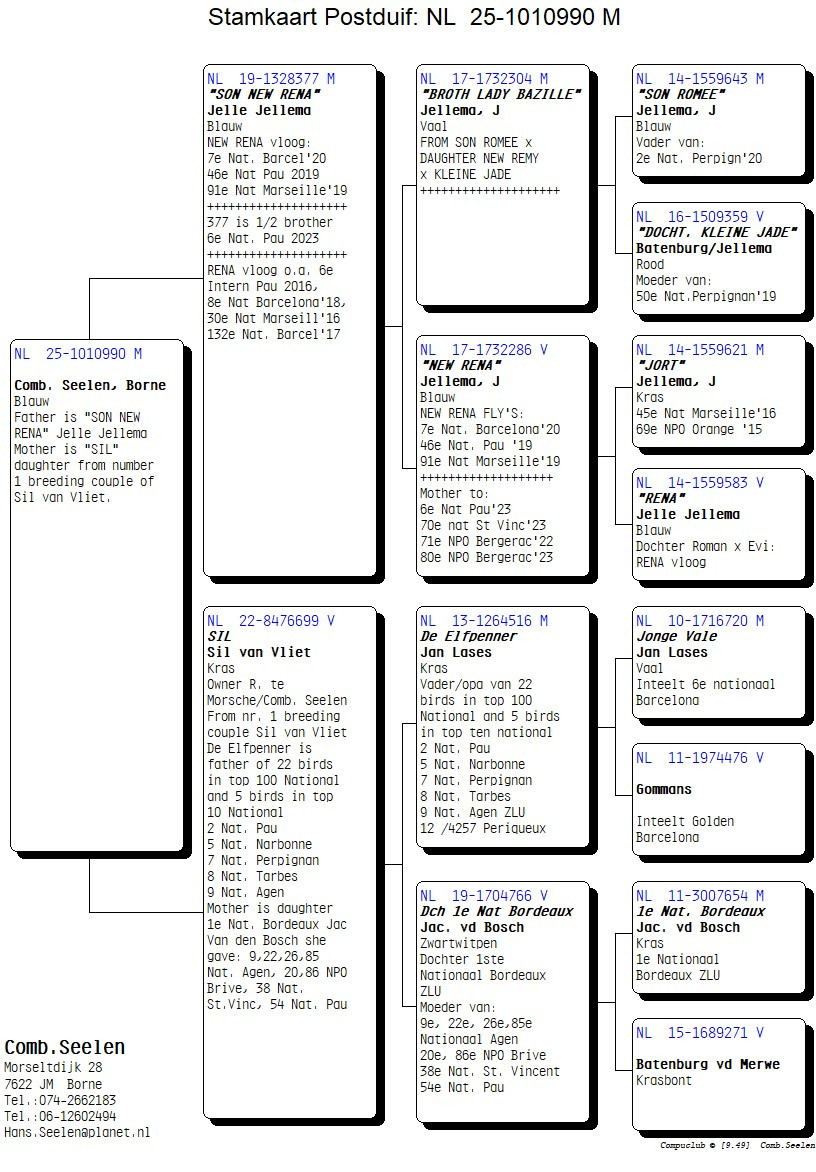 Son of “SON NEW RENA” 7 National Barcelona, x “SIL” daughter #1 breeder Sil van Vliet “DE ELFPENNER” x daughter 1st National Bordeaux !!
