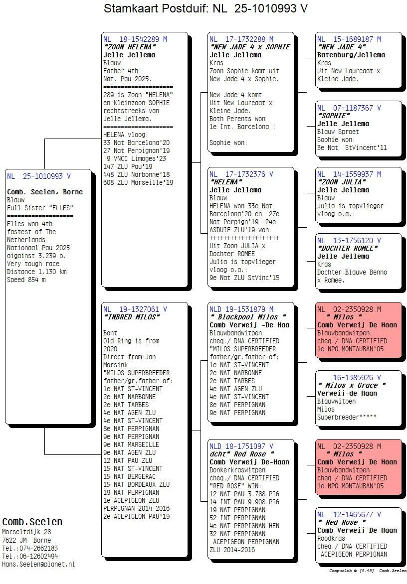 Full sister of “ELLES” the new super pigeon of the loft and winner of the 4th National Pau ’25 (very tough flight, distance 1.130 km, speed 854 mpm – metres per minute) against 3.239 pigeons ’25 !!