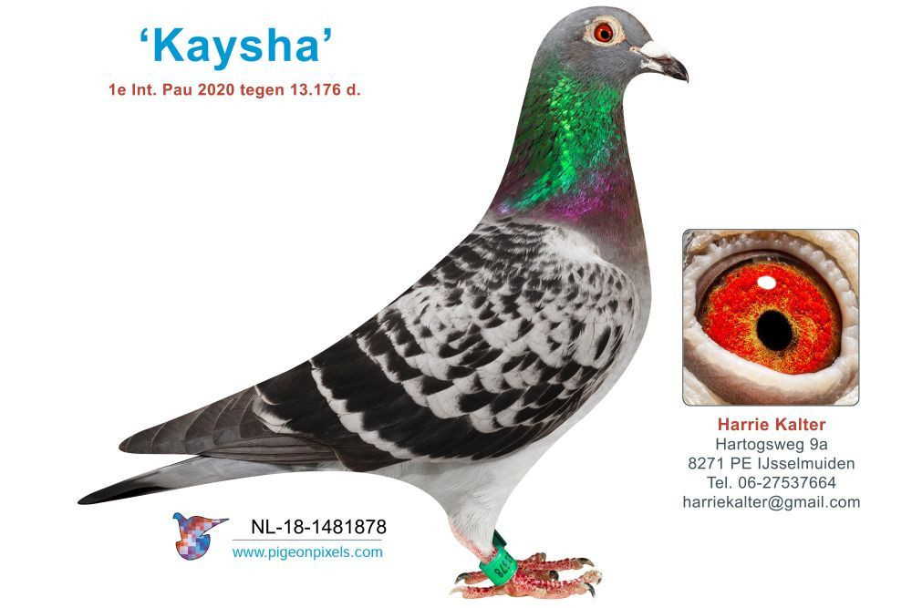 Dam: Daughter “BARCA ALEK” 2nd National Ace Barcelona 2 yr 2021 – 2022 x “KAYSHA” 1st International Pau 13.128 pigeons ’20 !!