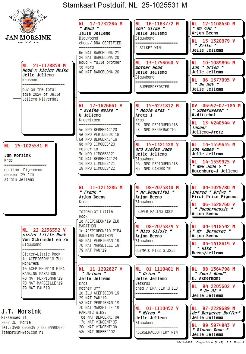 Son “NOUD 6th & 24th National Barcelona x KLEINE MEIKE” x sister “LITTLE ROCK” Jo van Schijndel & zn – 1st National Ace ZLU ’19 !!
