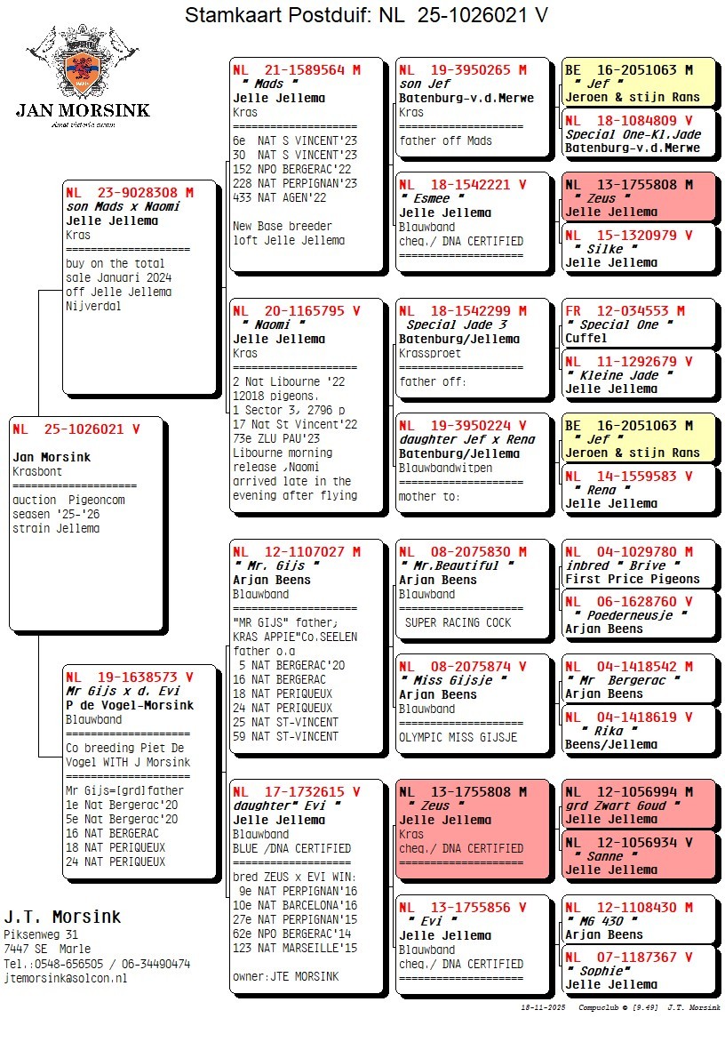 Two weeks later she won the 7th National Tarbes/St Vincent ZLU against 2.308 pigeons and she was the 1st of 189 pigeons in the long-distance club Fiante (Sec 8 t/m 11). With these 2 top results Naomi finished as 6th National Ace FCI World Best Pigeon and she was the BEST pigeon of Jelle Jellema in 2022.