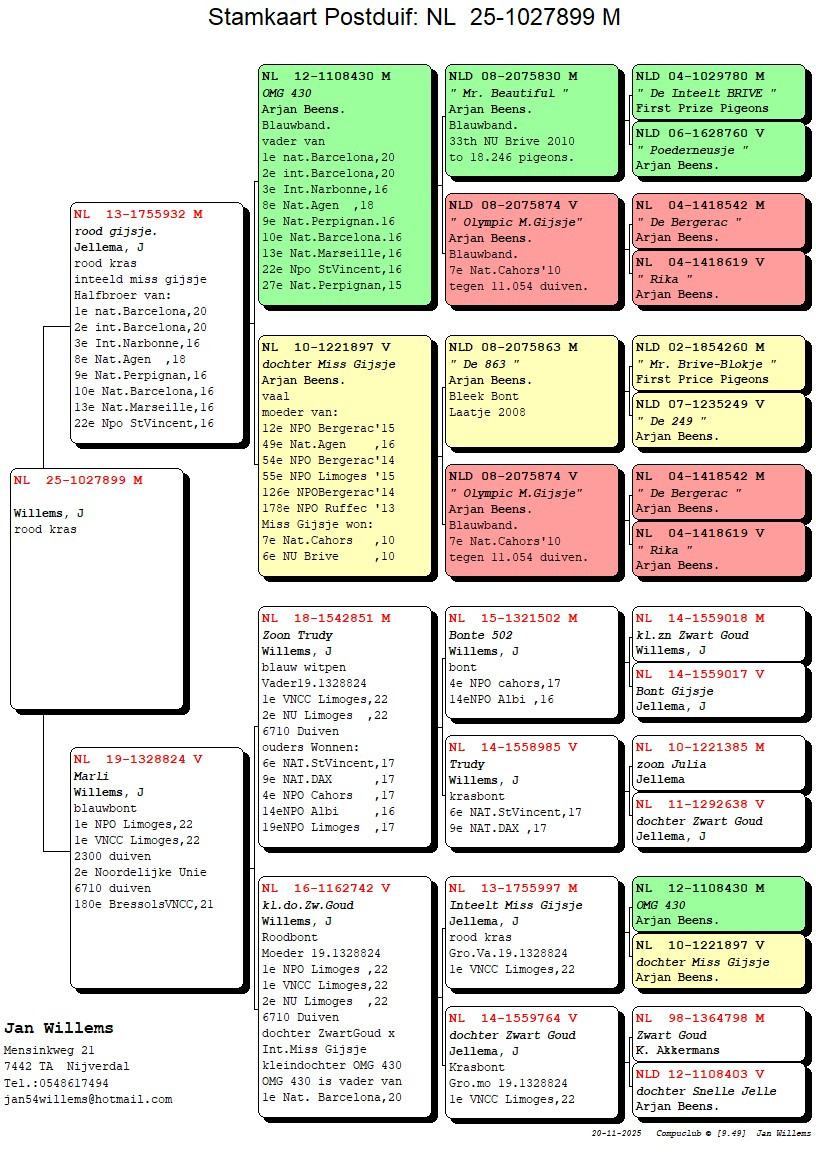 Son of “MARLI” 1st NPO LIMOGES, 1st VNCC Limoges 2.300 pigeons x topbreeder “ROOD GIJSJE” son of the worldfamous “MG430” !!