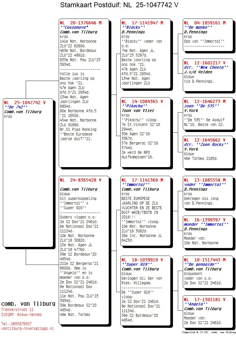 Mother : daughter “IMMORTAL x SUPER 919″ 2nd National s2 Dax and daughter superbreeder “ANGELA” mother 2 National Dax, 11 National Pau, 39 National Bordeaux, 49 National Tarbes, etc)