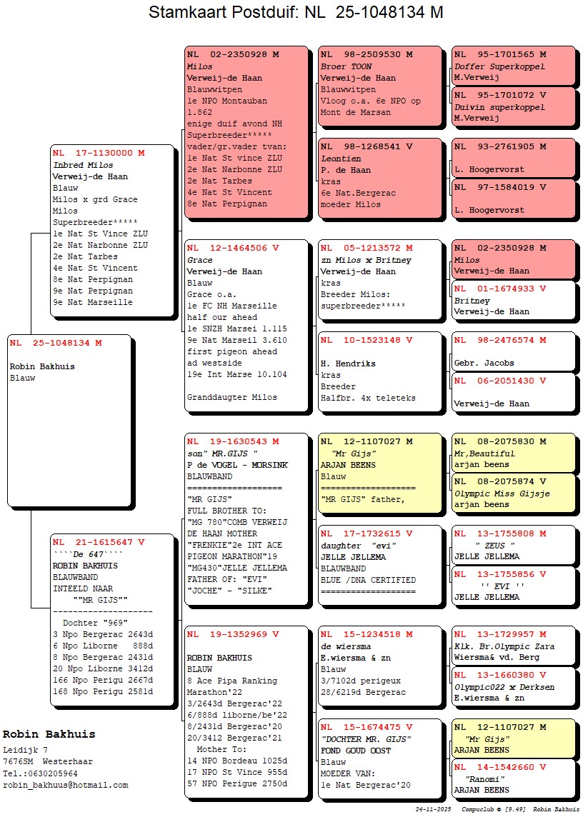 Father : inbreed son of “MILOS” stock breeder Verweij – de Haan