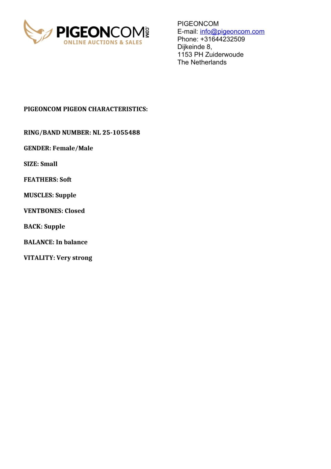 Father = son “FAST AGEN” 3 National Agen ZLU ’23 x “RENSKE” full sister “MIJS” 23 National Pau ’24, 176 National Marseille ’24 – direct Jelle Jellema