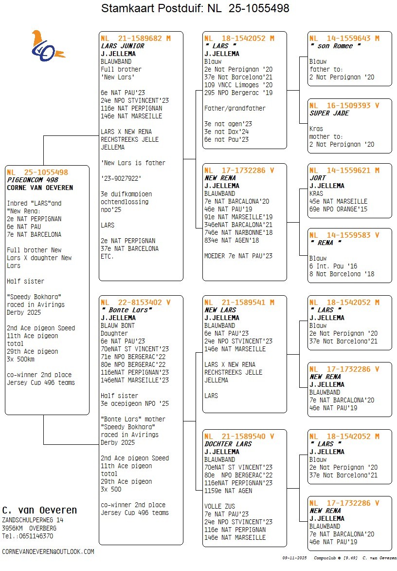 Mother = daughter of “NEW LARS” x “DOCHTER LARS” both are children of supercouple “LARS x NEW RENA” – direct Jelle Jellema