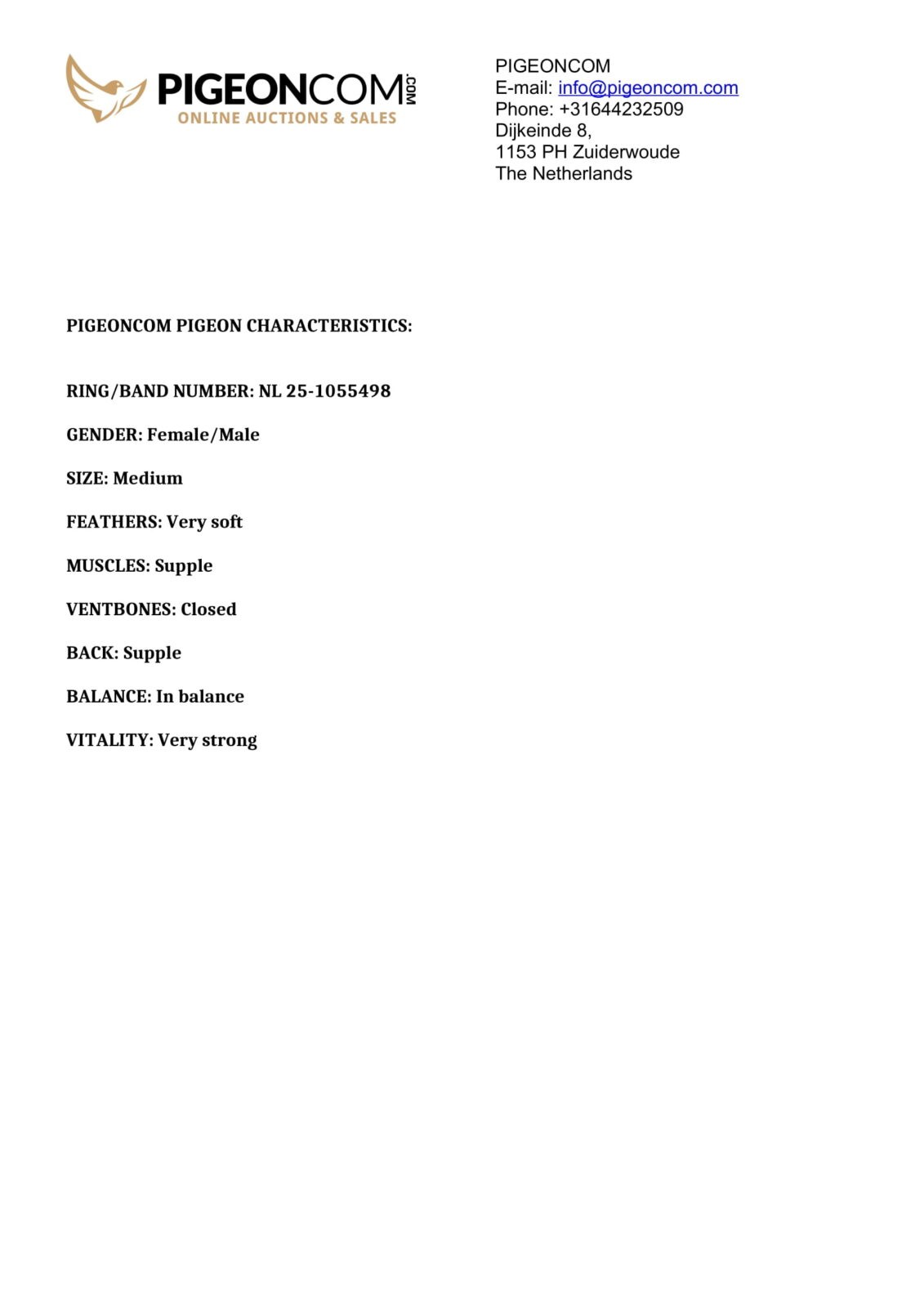 Father = son of “LARS” x “NEW RENA” – direct Jelle Jellema