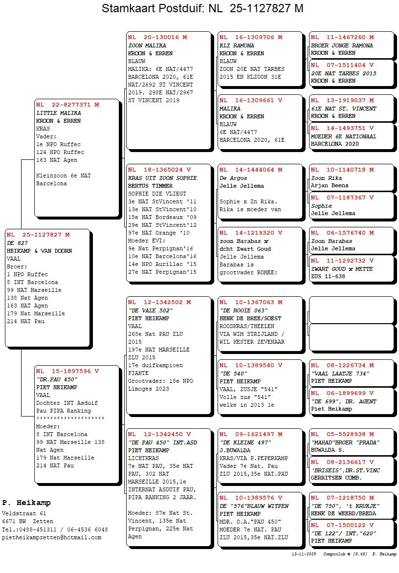 Full brother of 1st NPO Ruffec, 2nd National Ruffec, 8th International Barcelona, 99 National Marseille, 138 National Agen ZLU, 163 National Agen ZLU, 179 National Marseille, etc !! His mother is a daughter of “PAU 450” 1st International Ace Pau 2yr PiPa ranking !
