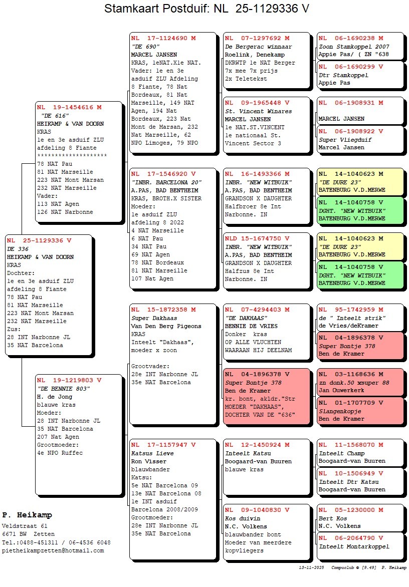 Daughter of “DE 616” 1st Ace Marathon ZLU dpt. 8 Fiante, 3rd 1st Ace Marathon ZLU dpt. 8 Fiante and son of super breeder “BARCELONA 20” x “BENNIE 803” mother of the 35th National Barcelona and granddaughter famous “DE DAKHAAS” !
