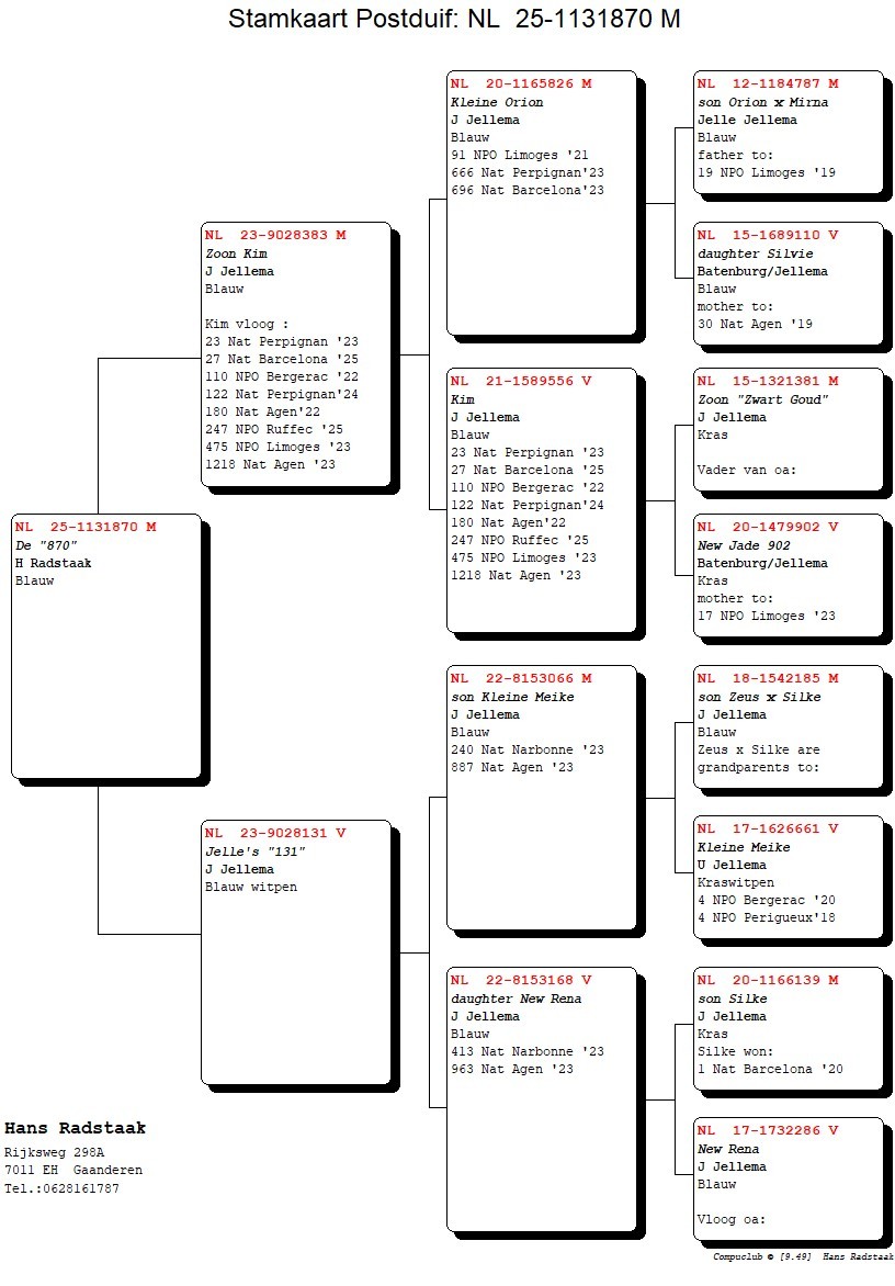 Father = son of “KIM” 27 National Barcelona ’25, 23 National Perpignan ’23, 122 National Perpignan ’24 – direct Jelle Jellema