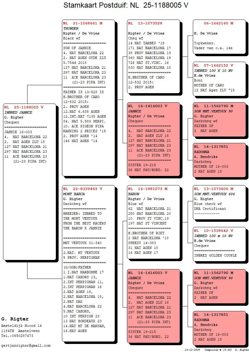 INBREED (son x daughter) “JANNIE” 2 National Agen ZLU, 4 National Barcelona, 127 National Barcelona , 297 National Barcelona !!
