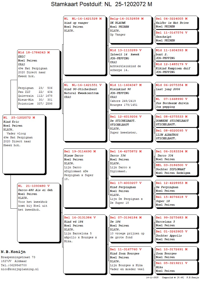 Father : “ERIC” 49 National Perpignan ’20 line 1st National Brive Noel Peiren x “SCHERPE” & “90” Jos Pepping