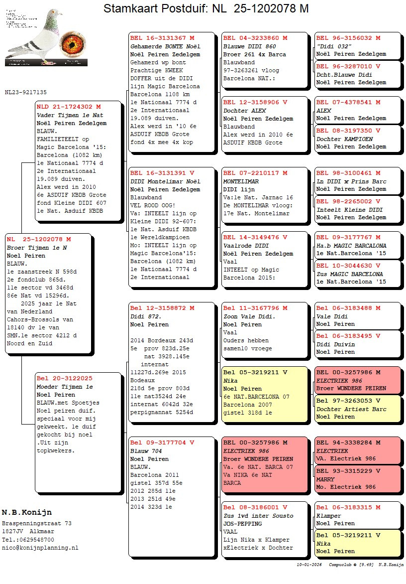Brother of “TIJMEN” 1st National Bressols (overall Netherlands) 18.140 pigeons ’25 !!!