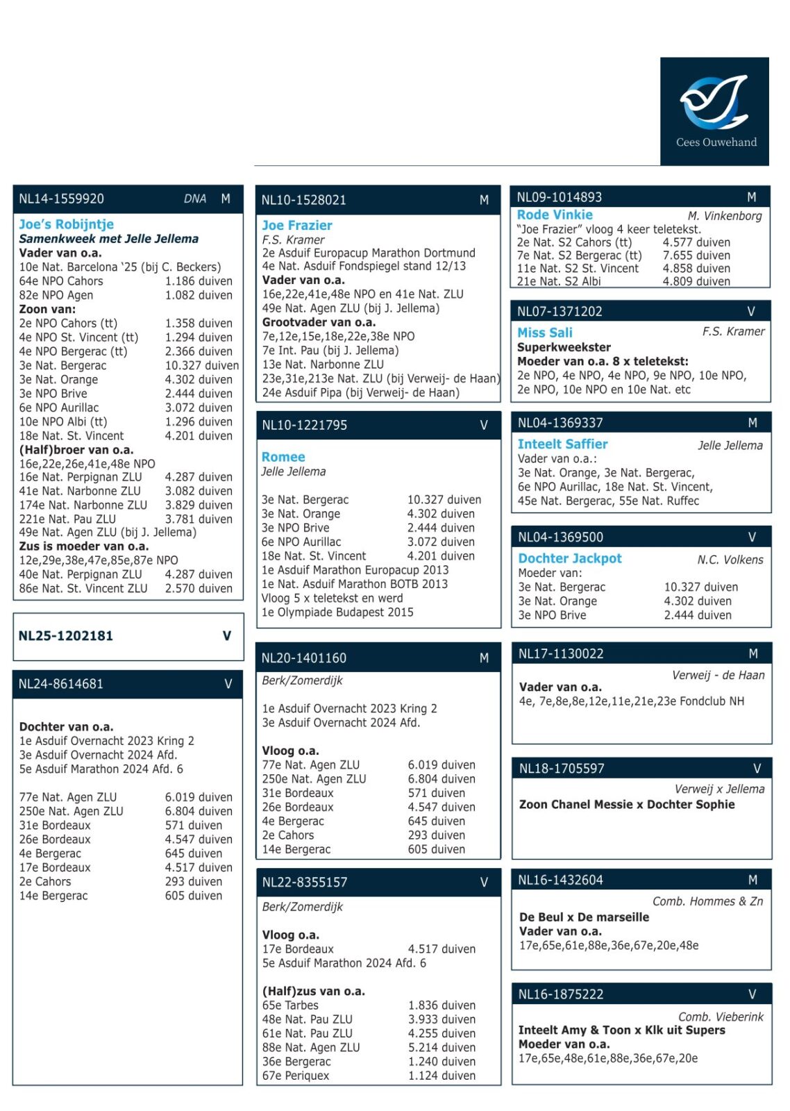 Daughter of “JOE’S ROBIJNTJE” (son of “JOE FRAZIER” x “ROMEE” co-breeding with Jelle Jellema) x daughter of the “ACE PAIR” 3rd Provincial Ace Marathon ’24 x 5th Provincial Ace Marathon ’24 !