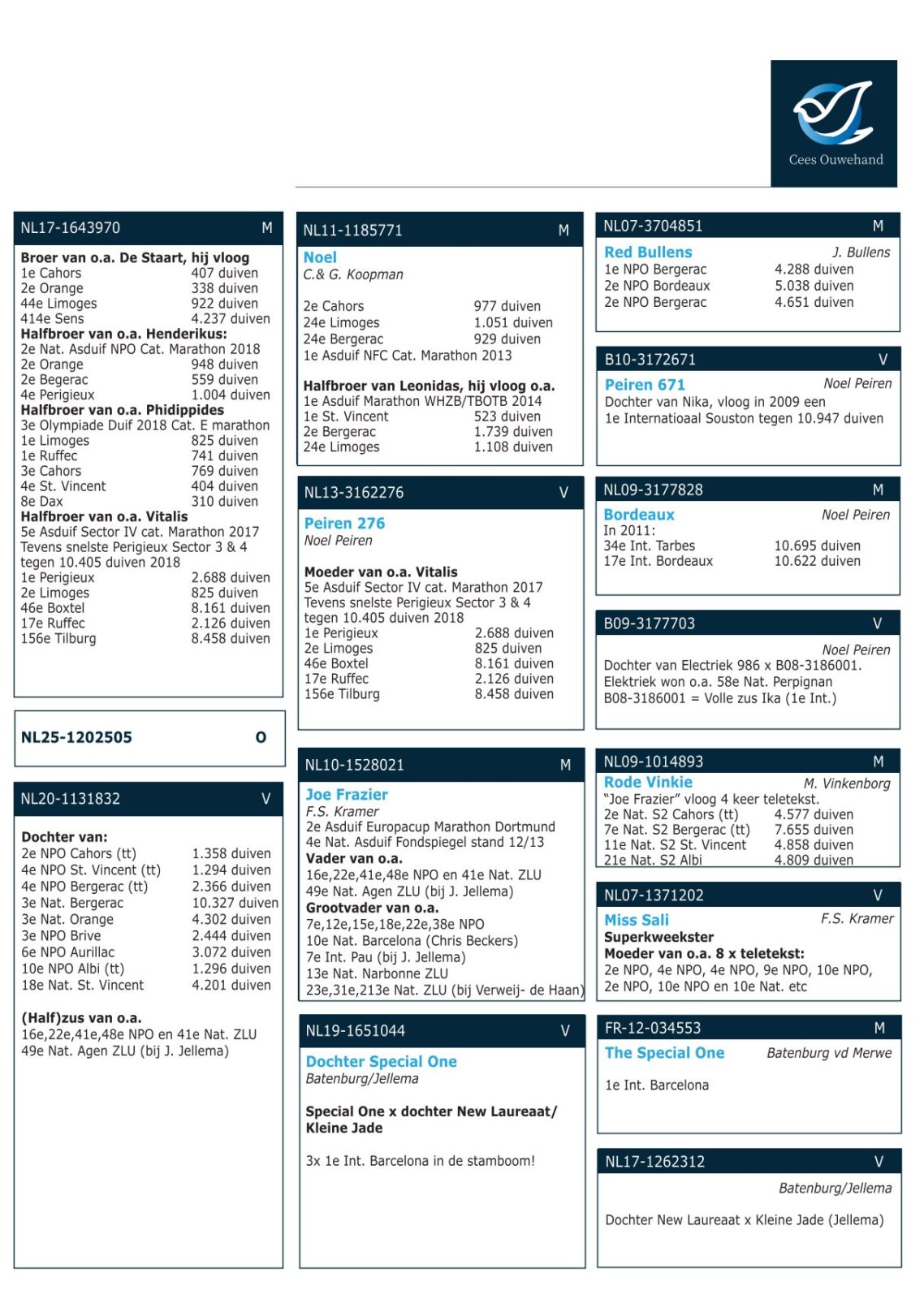 Son “NOEL” (halfbrother “HENDERIKUS”, “PHIDIPPIDES”, “VITALIS” direct C.&G. Koopman) paired to a daughter of “JOE FRAZIER” x daughter “THE SPECIAL ONE” !