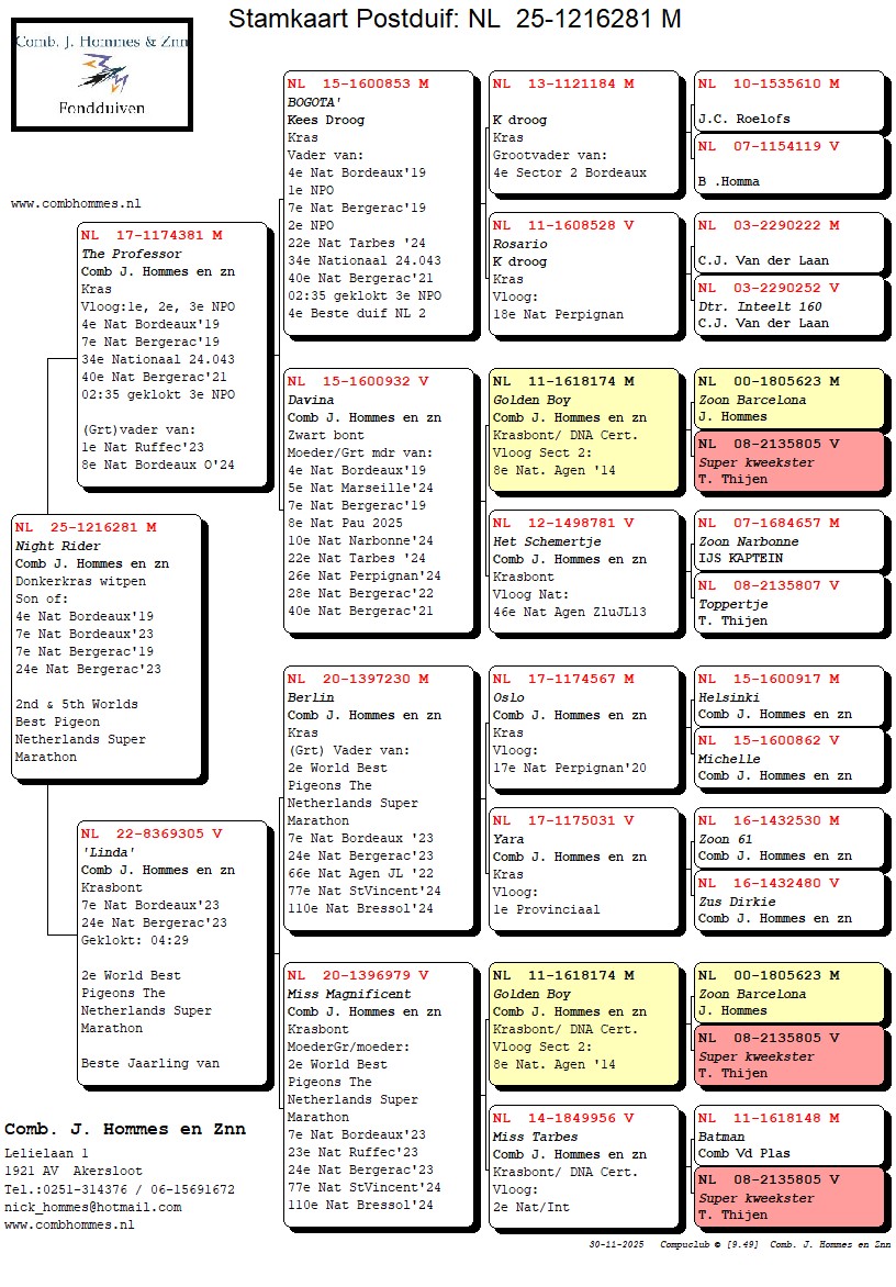 Hyper Exclusive !! Son of “THE PROFESSOR” winner of 1 NPO, 2 NPO, 3 NPO, etc x “LINDA” 2nd World’s Best Super Marathon Pigeon FCI Netherlands !!