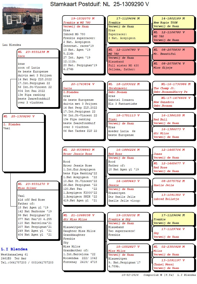 Granddaughter of superbreeders “MISS MILOS” & “RED ROSS” x son “LUCIA” 6th Best European Extreme Marathon Pigeon (H) PiPa ranking & 13th Best European Marathon Pigeon overall !