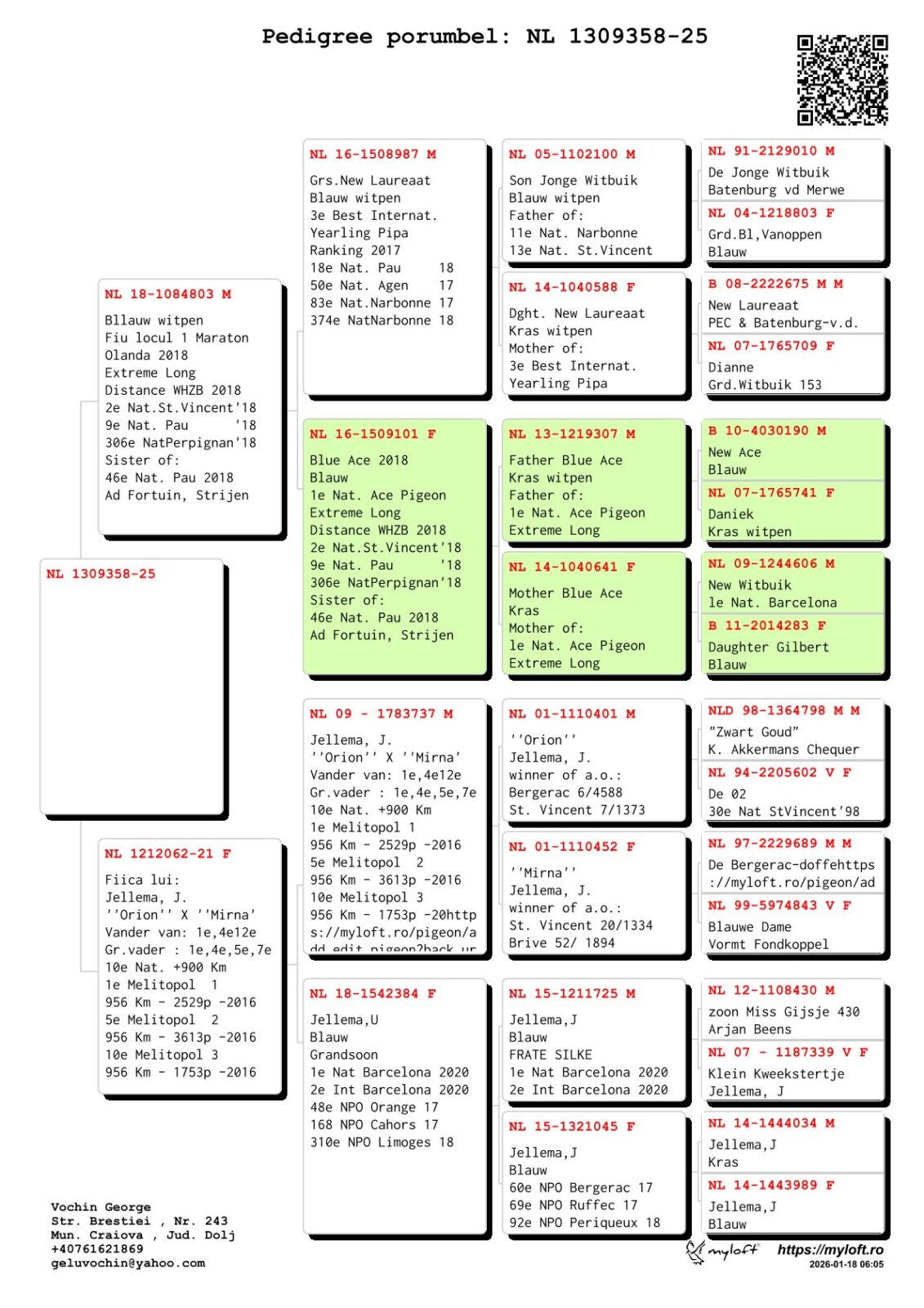 Granddaughter of “ORION” x “MIRNA” – Jelle Jellema, paired to a son of “BLUE ACE” 1st National Ace Extreme Marathon WHZB x “GRANDSON NEW LAUREAAT” 3rd International Ace Yearlings Extreme Marathon Pipa ranking – Batenburg van de Merwe !!