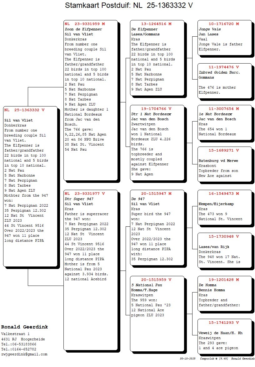 Vader NL23-9331959 zoon van de superkweker de ‘Elfpenner’ van Sil van Vliet.
