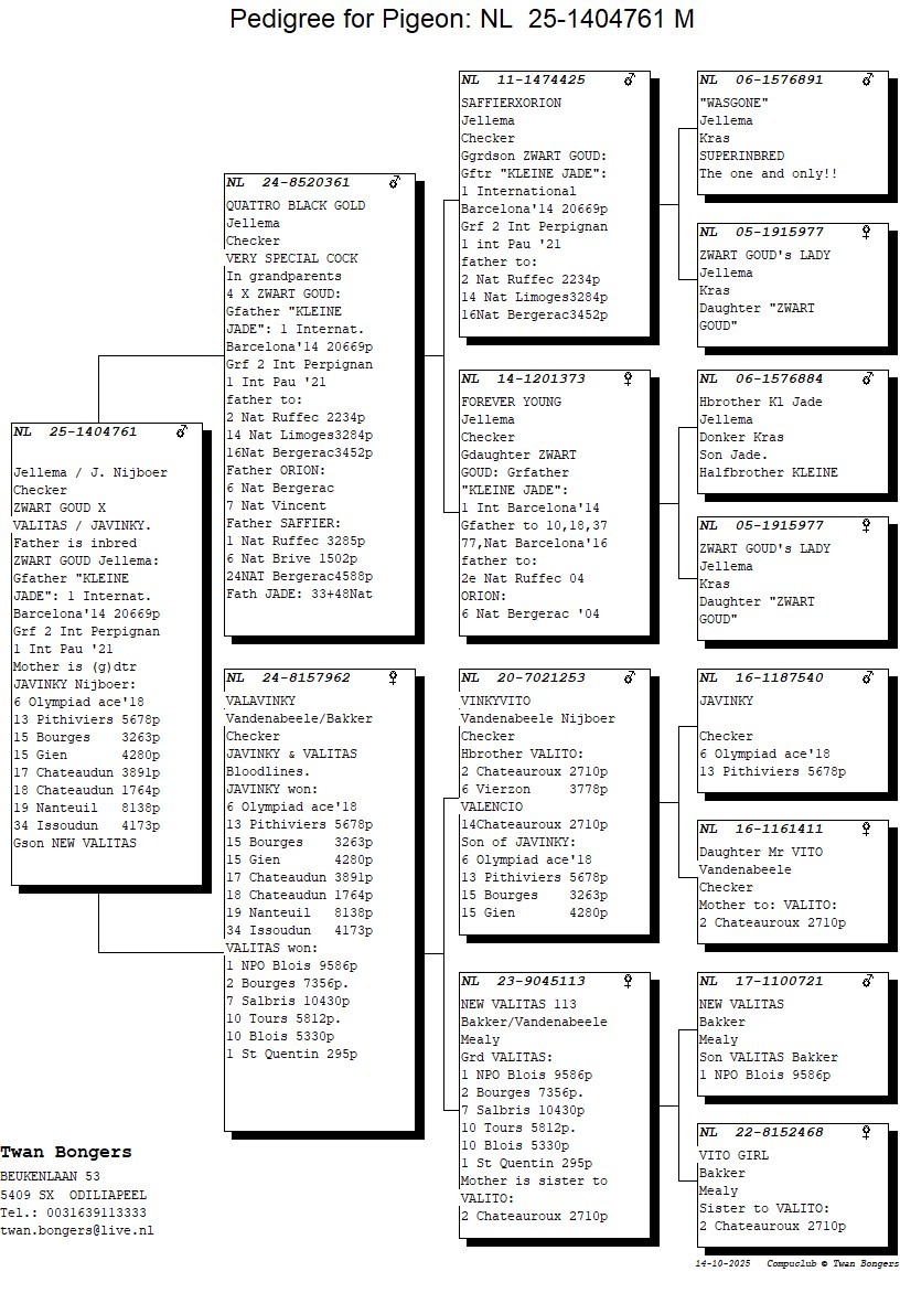 Inbreed “ZWART GOUD” x granddaughter “JAVINKY” & the best of Ruud and Dolf Bakker !