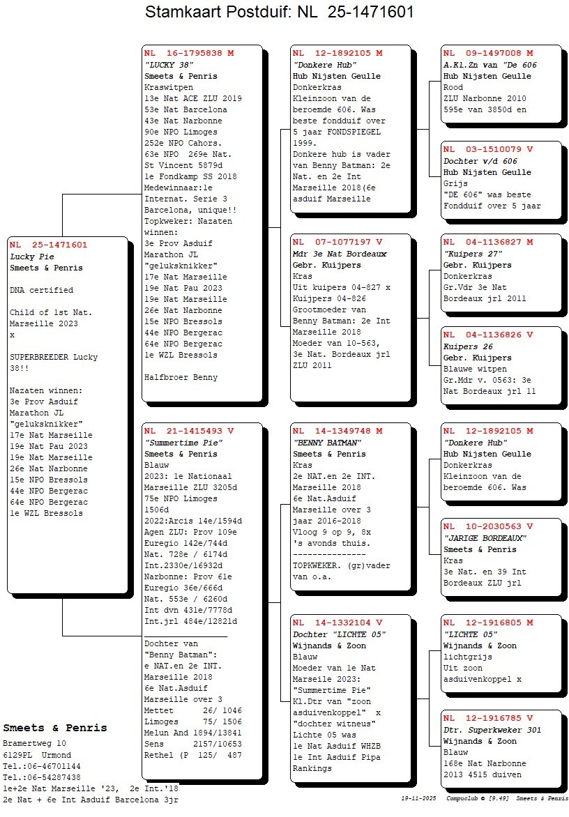 “BENNY BATMAN” is (grand)father of the 1st National Marseille, 2nd National Marseille, 4th National Agen ZLU, 6th National Barcelona, 8th Ace OLR Derby Avirings Slovenia, 10th National Agen ZLU, 19National Agen ZLU, etc …!
