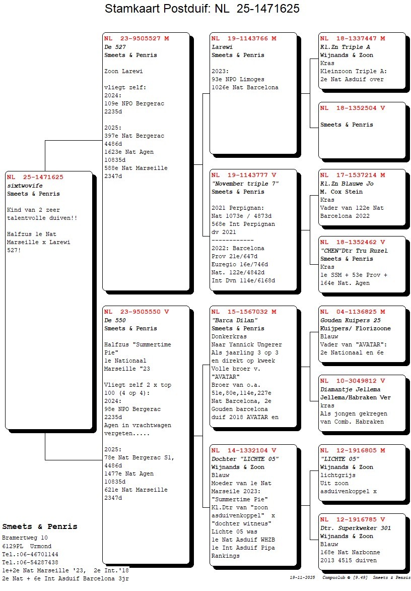 “DOCHTER LICHTE 05” (best lines of Wijnands & zn – 1st National Ace ZLU WHZB, 1st National Ace Marathon PiPa ranking, 7 National Agen ZLU, 11 National Narbonne) is the mother of “SUMMERTIME PIE” 1st National Marseille 3.205 p. ’23 !