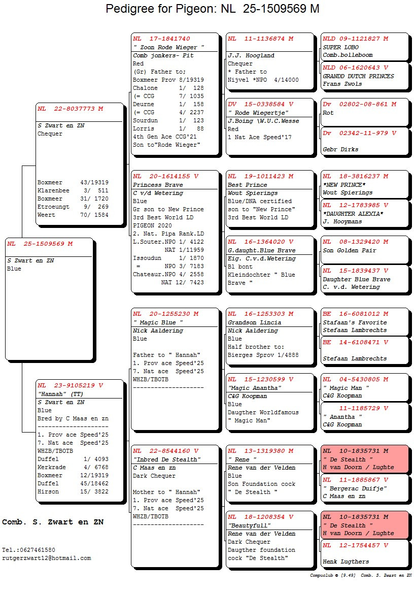 EXCLUSIVE !! This great pigeon is a direct and very exclusive son of “HANNAH” 7th National Ace Speed NPO WHZB/TBOTB  (1st Provincial Ace Speed NPO Dpt 11. Friesland) 2025 !!