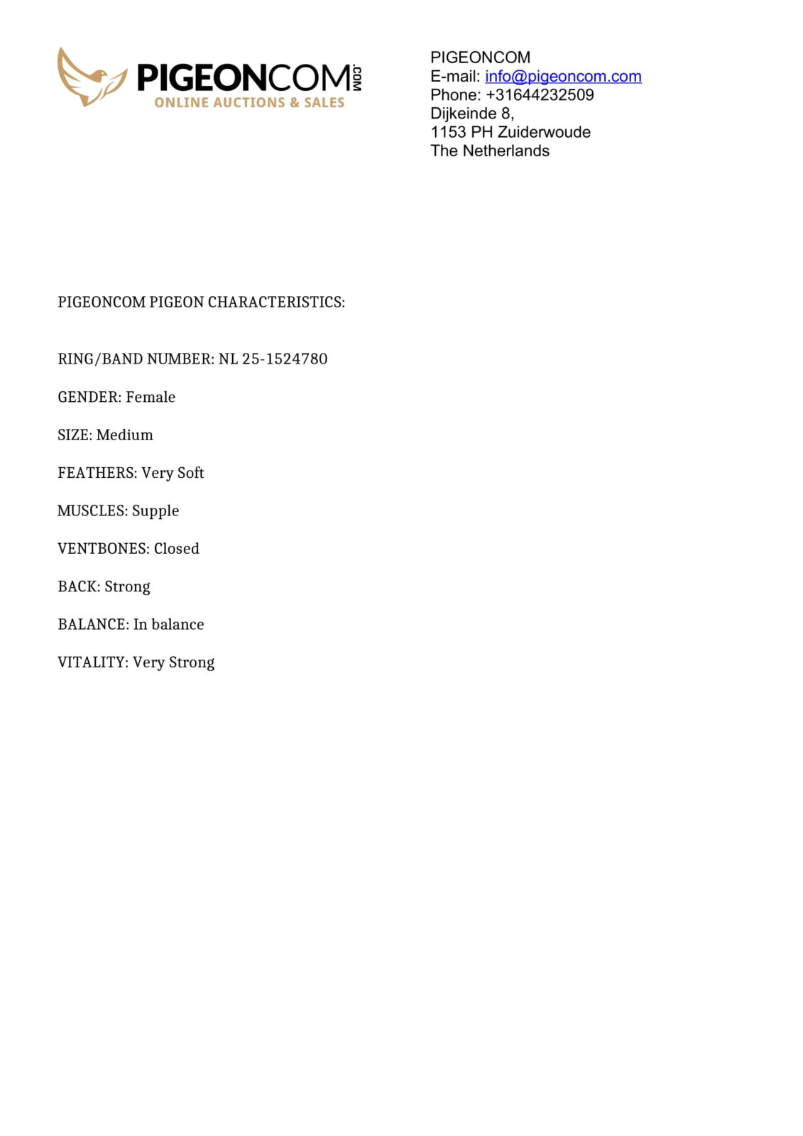 Daughter of “BUZZ” 1st Ace Long Distance NPO Dpt. 11 Friesland Rayon ’25, 9th Provincial Ace LD Friesland ’25 (grandson “OLYMPIC INGETEELDE” 1st Olympic Pigeon Long Distance The Netherlands) x “BLUE FAIRY” 1st Arlon 3.339 pigeons, 1st Morlincourt 1.003 pigeons !!