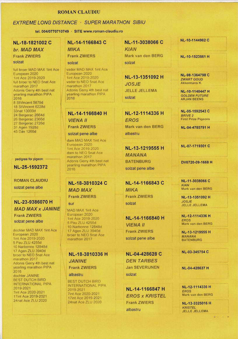 100% FRANK ZWIERS !!! Brother “MAD MAX” x daughter “MAD MAX” 1st International Ace 2019-2020 PiPa ranking !