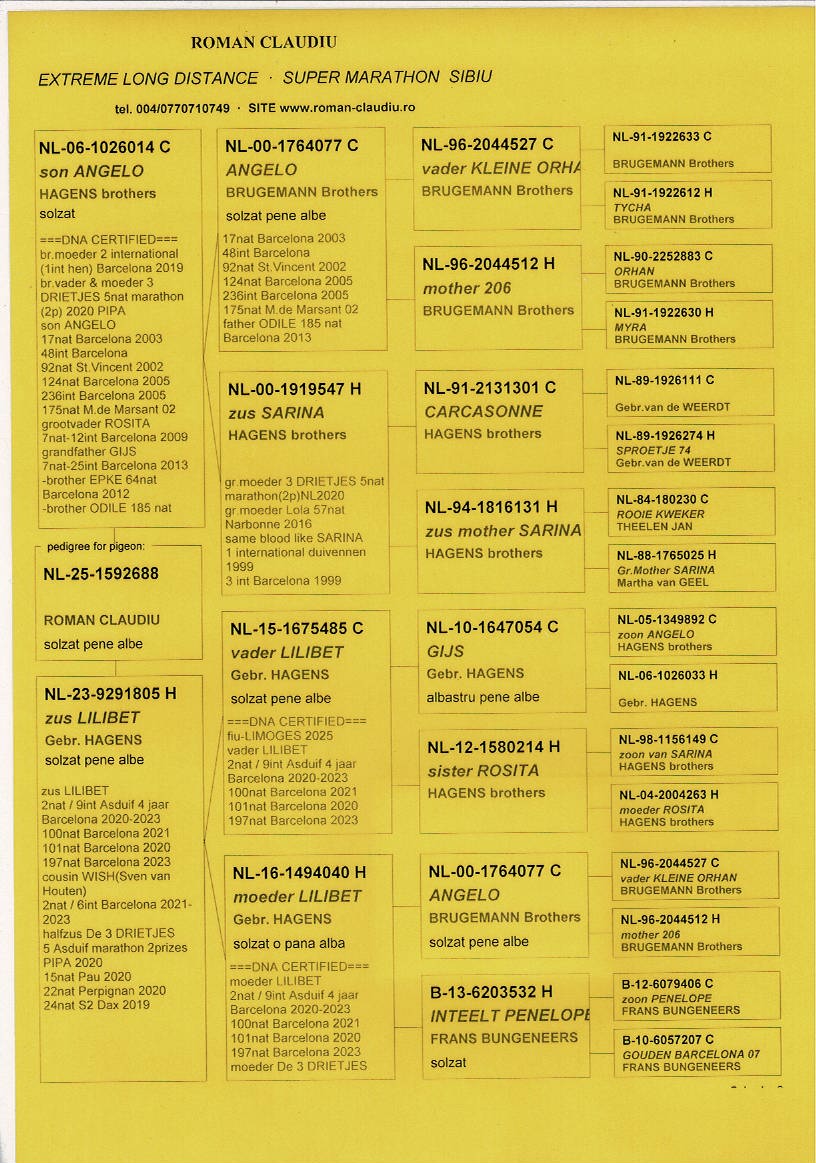 100% GEBROEDERS HAGENS !!! Son “ANGELO” 17 National Barcelona x sister “LILIBET” 2nd National & 9th International Ace Barcelona 4yr 2020-2023 !!