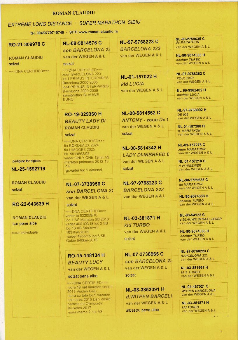 100% A. & L. VAN DER WEGEN !!! Inbreed (grandson x granddaughter) “BARCELONA 223” Primus Interpares Barcelona 2000-2005, 10 National Barcelona, 26 National Narbonne and halfbrother “BLAUWE EURO” !!